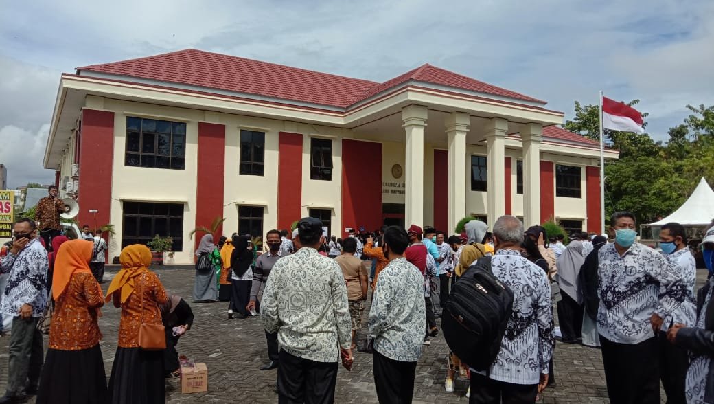 Aksi yang digelar ratusan guru ini berjalaln dengan aman, tertib dan kondusif serta tetap menerepkan protokol kesehatan dengan memakai masker.