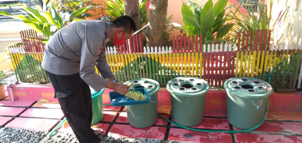 “Kegiatan budi daya tanaman hydroponic serta lele dumbo ini merupakan bagian program pembinaan ketahanan pangan di tengah pandemi Covid-19”, ujar Kapolsek IPTU Sudirman (3/7-2020)