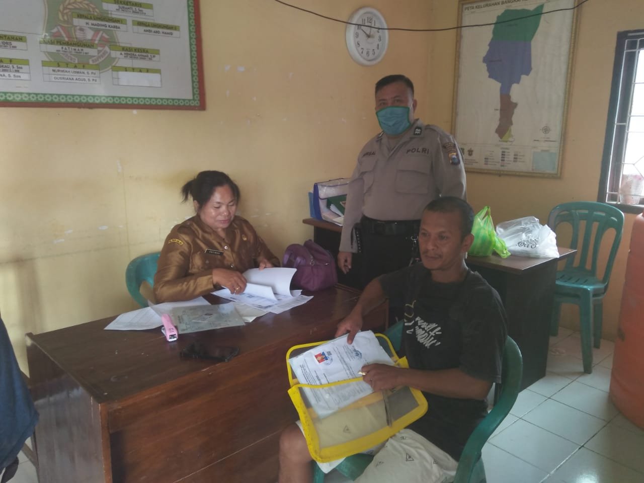 KOSONGSATUNEWS.COM,SIDRAP— Bhabinkamtibmas Kelurahan Bangkai Kecamatan Watangpulu, Sidrap lakukan pendampingan dan pengawalan terhadap petugas kelurahan bangkai untuk bagi kartu tanda pembayaran kepada 12 Kepala keluarga (KK) penerima Bantuan Sosial Tunai (BST). Selasa, 14 Juli 2020.