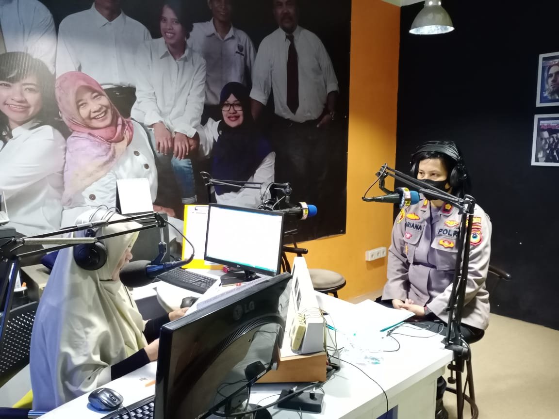 MAKASSAR-Kapolsek Mamajang Kompol Mariana Taruk Rante, SE, S.IK, MH laksanakan kegiatan talkshow di Radio Suara Celeebes FM terkait imbauan kamtibmas dan protokol kesehatan, Kamis (17/3/2022)