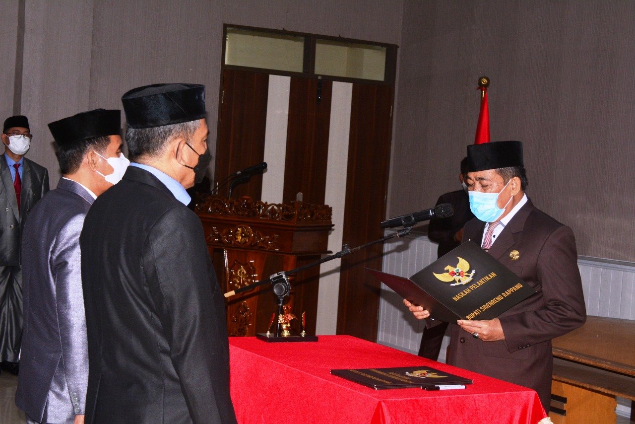 Pelantikan berlangsung di Ruang Rapat Lantai III, Kantor Bupati Sidrap dihadiri Ketua DPRD Sidrap, H. Ruslan, Sekertaris Daerah, Sudirman Bungi, Inspektur Kabupaten, Mohammad Rohady Ramadhan.