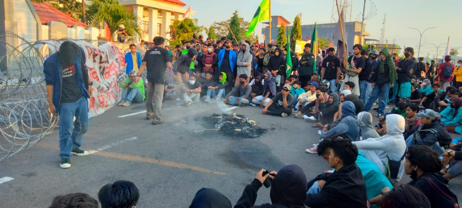 Unjuk rasa yang dilakukan mahasiswa itu, selain melakukan orasi yang menolak berbagai kebijakan pemerintah yang tidak pro rakyat. Mereka juga membakar ban di tengah jalan Sudirman depan Gedung DPRD Parepare dan mengusung keranda yang menandakan pemerintahan sudah mati.