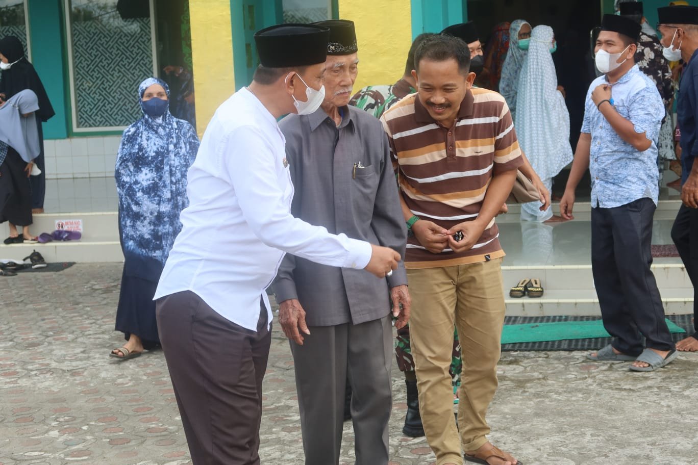 Andi Asmidin yang tak lain mantan Bupati Wajo, nampak memberikan beberapa masukan ke Amran Mahmud di sela-sela menunggu waktu shalat Azhar di Masjid At-Taqwa, Kelurahan Anabanua, Kecamatan Maniangpajo, Ahad (17/4/22).