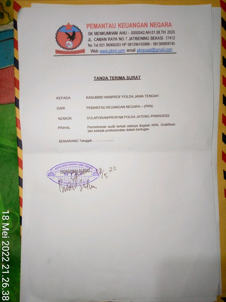 Patar menjelaskan karena Laporan PKN sudah mangkrak 5 bulan tidak jelas bagaimana perkembangannya maka PKN sesuai dengan amanat pasal pasal 6 dan 9 peraturan kepala kepolisian Nomor 6 Tahun 2019 tentang Penyidikan Tindak Pidana dan pasal 7 Peraturan Kepala Kepolisian nomor 14 Tahun 2011 pasal PKN melaporkan Kasus ini kepada Propam Mabes Polri dan Propam Polda jawa tengah DENGAN HARAPAN PKN agar terlaksana Visi Presisi dari Kapolri dan agar Profesioanal Polri benar benar tercapai dan terlaksana karena tuntutan profesionalisme Polri merupakan kebutuhan tugas dalam mewujudkan Polri sebagai Polisi Sipil yang profesional, berwibawa dan dapat dipercaya oleh rakyatnya.dan untuk mewujudkan postur Polri sebagai sosok penolong, pelayan, dan sahabat masyarakat serta sebagai penegak hukum yang jujur, benar, adil, transparan dan akuntabel guna memelihara keamanan dalam negeri yang mantap dan dinamis. Demikian di sampaikan Patar Sihotang pada acara penutupan acara konperensi pers sambil menunjukkan Bukti laporan Ke propam Polda jawa tengah dan Propam Mabes Polri