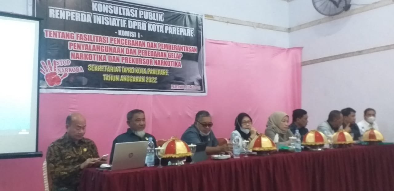 Olehnya dilakukan Konsultasi Pablik Renperda inisiatif Komisi 1 DPRD Kota Parepare, tentang Fasilitasi Pencegahan, Pemberantasan & Penyalahgunaan Narkoba dan sejenisnya. Demian disampaikan Ibu Ketua DPRD Kota Parepare. Andi Nurhatina S.sos.saat membuka acara konsultasi tersebut di Hotel Delimasari. Kemarin.