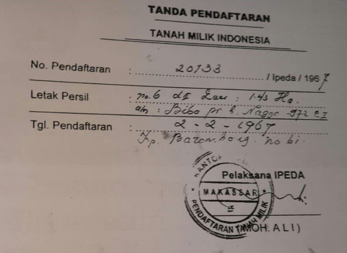 Bahkan surat yang akan di legelitaskan dari rinci ke sertifikat hak milik, menjadi dilema karena RW di kelurahan tanjung bunga selalu berkata akan mempelajari surat legelitas dari Ir Haji Andi Idris Mapakaya.