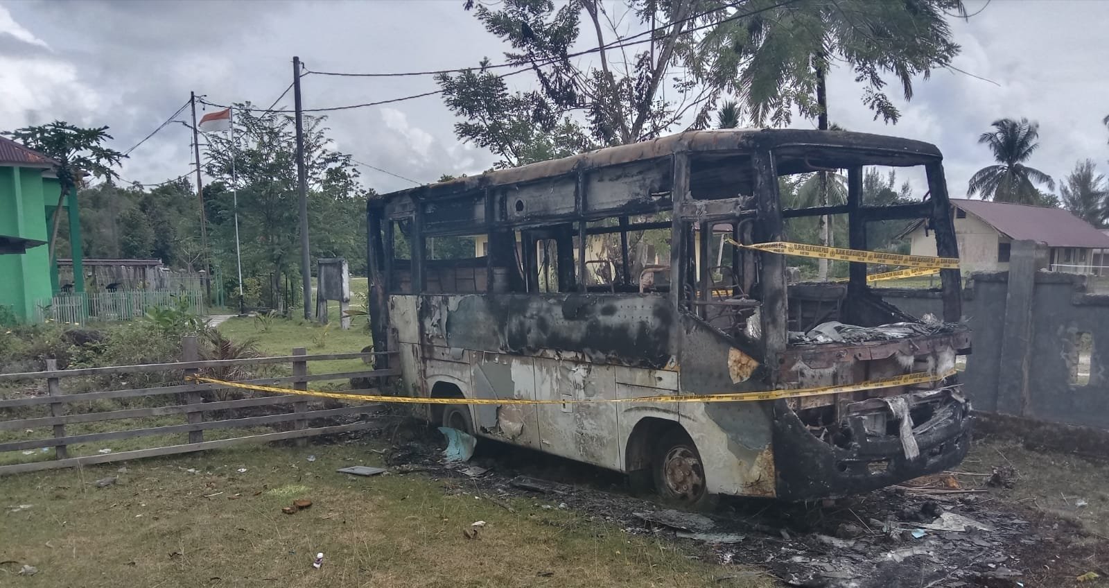 Kepala Desa Labuan Bakti ” Ruslan” yang dimintai Watawan keterangan nya pada hari jum’at tanggal 10/6/2022 melalui telpon hp nya membenarkan memang ada kejadian di Desa Labuan Bakti Mobil Damri sekolah yang memang diparkir di Lokasi Kantor Camat teupah selatan Terbakar Semalam Lebih kurang sekira pukul,22 ,00 tanggal. 9/6/2022 Habis hangus terbakar.