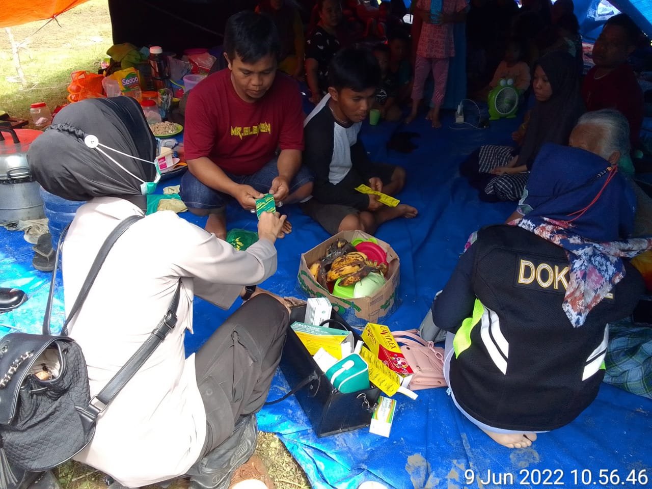 Di pengungsian Desa Mekkatta, terlihat Kapolres Majene di dampingi Kabag Ops dan Kapolsek Malunda menghibur dan menyemangati para pengungsih sekaligus memberikan pelayanan kesehatan dengan memberikan vitamin dan pemeriksaan tensi, Rabu (9/6/22).