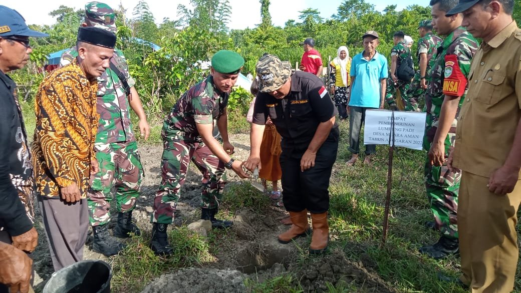 Simeulue:Kodim 0115/Simeulue beserta Dinas Pertanian Kab. Simeulue, laksanakan kegiatan penyerahan alat dan mesin pertanian (Alsintan) peletakan batu pertama pembangunan lumbung padi beserta pemberian hadiah kepada tim sanggar tari,