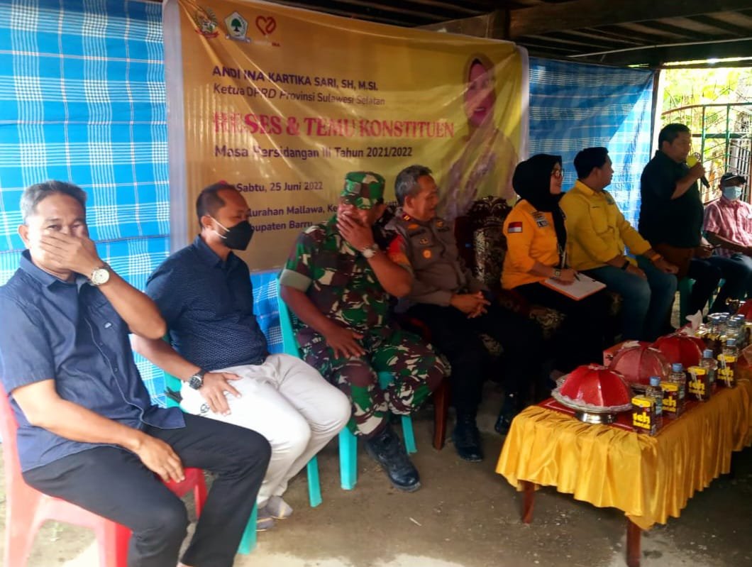 Dalam acara reses dan temu konstituen di kelurahan mallawa ini yang sempat mendampingi di acara diantaranya Ketua DPD II partai Golkar kabupaten Barru,anggota DPRD kabupate Barru fraksi golkar h. Rusdi cara, Camat Mallusetasi di wakili sekertaris kecamatan, lurah mallawa bapak Yunus, Kapolsek Mallusetasi beserta personil, bapak danramil kecamatan Mallusetasi beserta jajarannya dan para tokoh masyarakat.