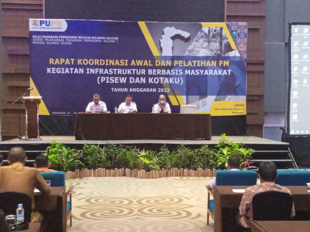 Kosongsatunews.com – Makassar, Rapat koordinasi awal dan pelatihan fasiltator kegiatan Infrastruktur berbasis Masyarakat (PISEW dan KOTAKU) Sulawesi Selatan, dilaksanakan di Hotel Sheraton Makassar, senin (27/6/2022)