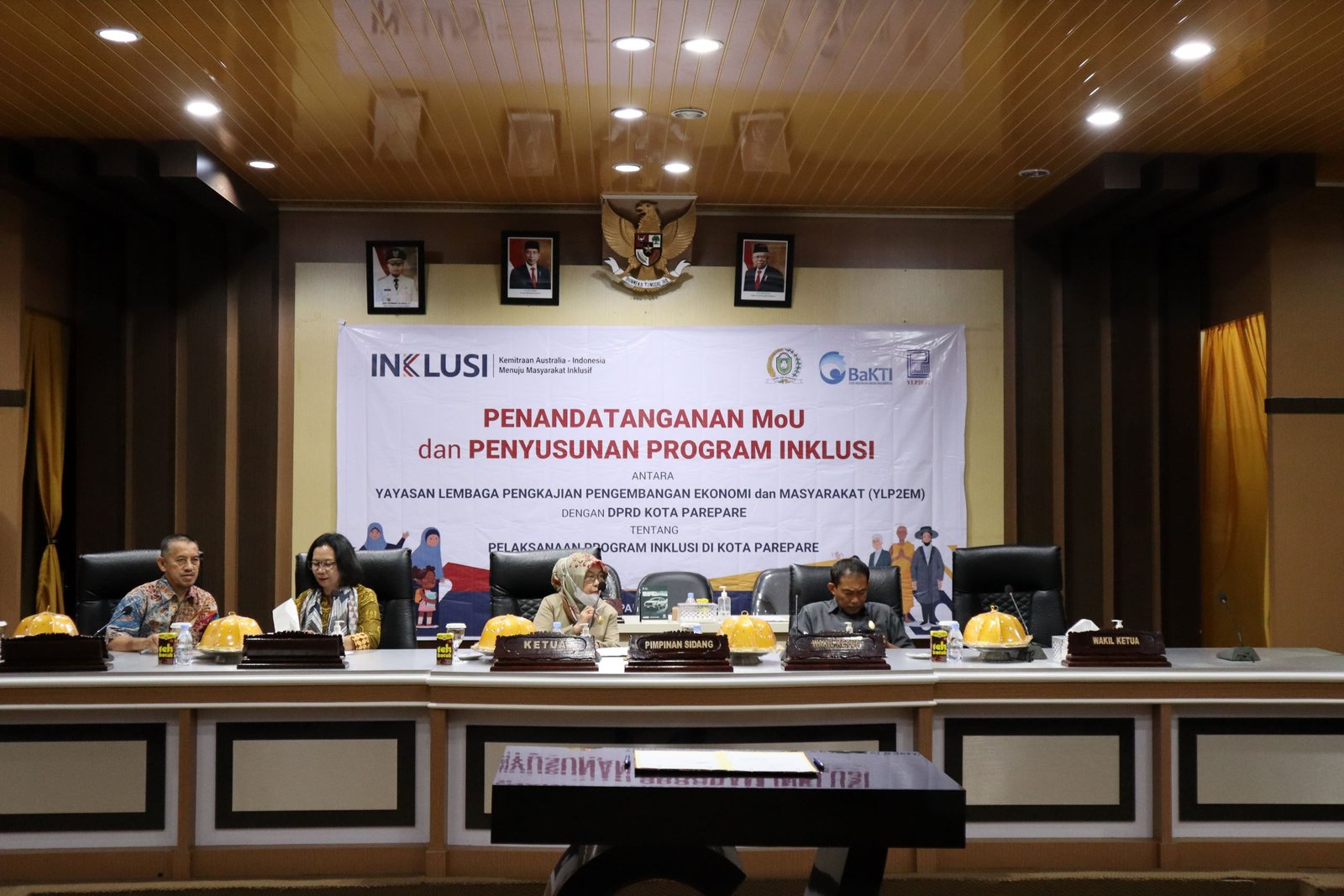 Penandatanganan kerja sama ini antara Yayasan Lembaga Pengkajian Pengembangan Ekonomi dan Masyarakat (YLP2EM) dengan DPRD Kota Parepare tentang pelaksanaan program inklusi di Kota Parepare.