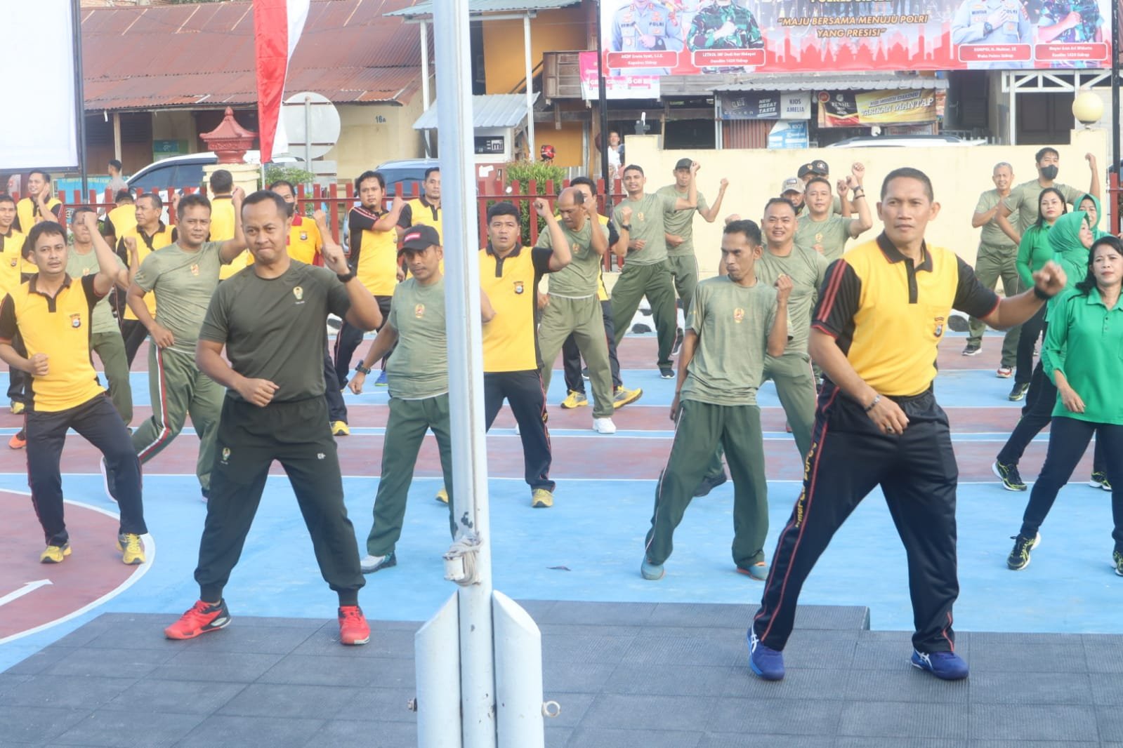 “Olahraga bersama ini dalam rangka hari Ulang Tahun Republik Indonesia ke -77 sekaligus untuk membangun Sinergitas dan solidaritas antara Polri dan TNI dengan Harapan bisa bersama-sama menjaga wilayah dengan mengedepankan persatuan dan kesatuan serta keamanan”, Ujarnya.
