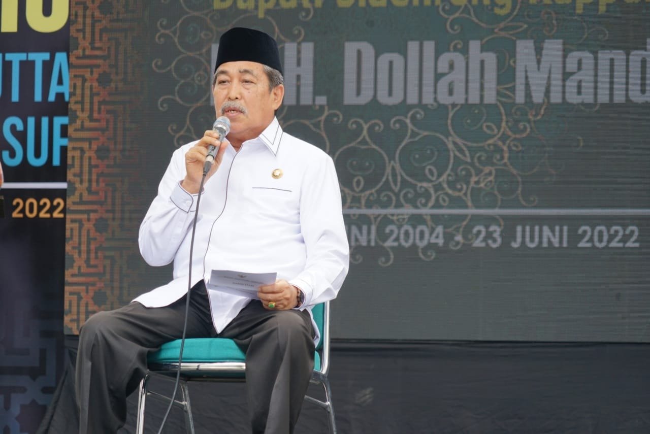 Bupati Sidrap, H. Dollah Mando menghadiri haul ke-18 Anregurutta KH Abdul Muin Yusuf yang akrab dipanggil Kali Sidenreng di Pondok Pesantren Al-Urwatul Wutsqaa Benteng, Kecamatan Baranti, Sabtu (6/8/2022).
