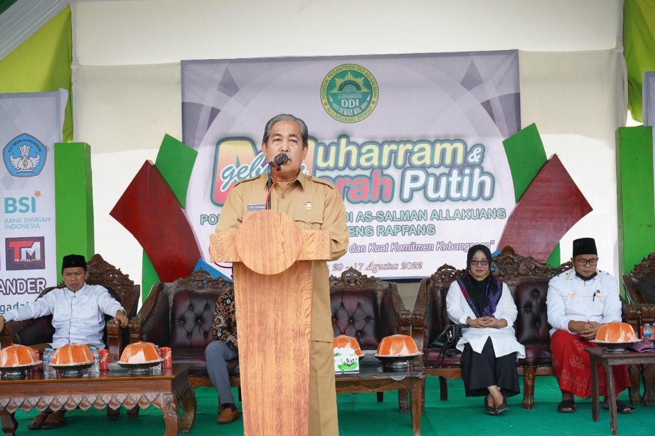 Bupati Sidrap, H. Dollah Mando didampingi Wakil Direktur DDI As-Salman Allakkuang, Kiai Muda Abdul Malik Tibe, membuka Gebyar Muharram dan Merah Putih di Pondok Pesantren (Ponpes) DDI As-Salman, Desa Allakkuang, Kecamatan Maritengngae, Selasa (9/8/2022).