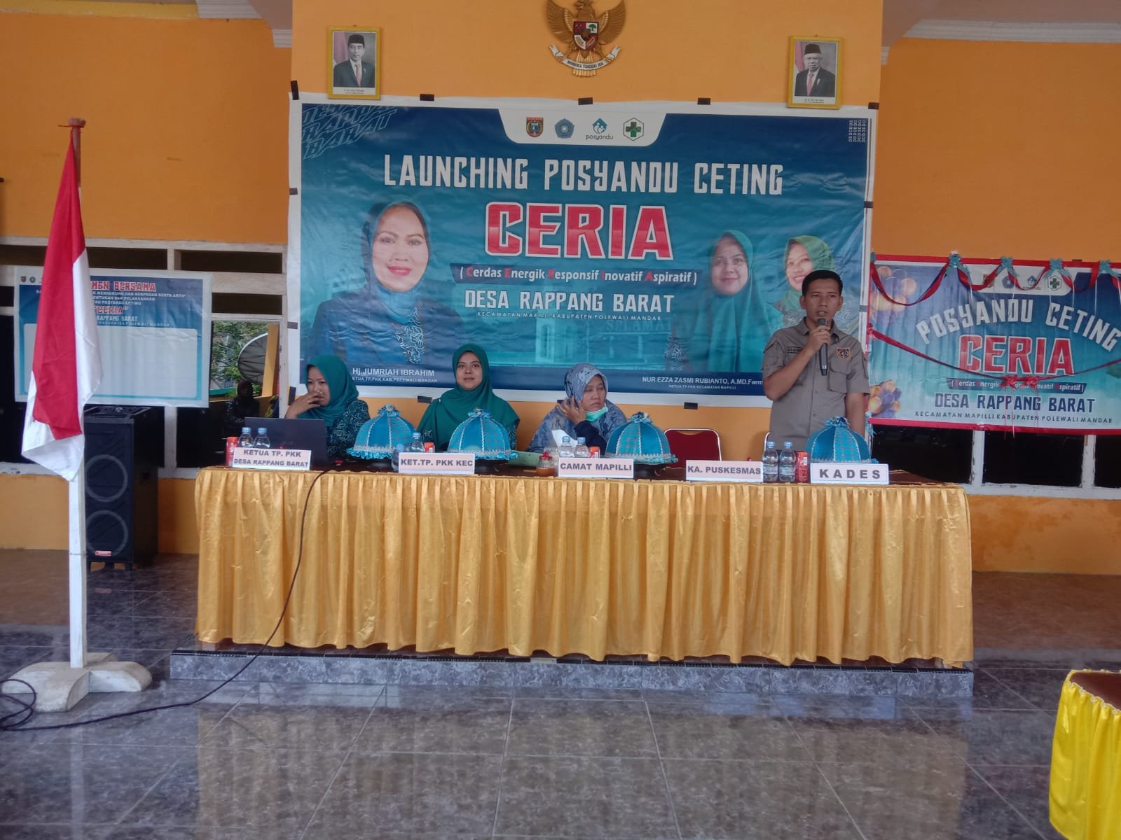 KOSONGSATUNEWS.COM — Ketua Tim Penggerak PKK Kecamatan Mapilli Kabupaten Polman, Sulbar Nur Ezza Zasmi Rubianto bersama Ketua TP PKK Desa Rappang Barat, Nur Anidah didampingi Kepala Desa Rappang Barat, Aco Alimuddin melaunching Posyandu Ceting di aula kantor desa pada sabtu, 13 Agustus 2022.
