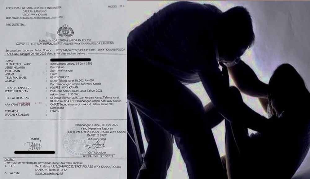 Lampung – Yth. Bapak Kapolda Lampung, laporan polisi yang disampaikan seorang wanita berinisial RH ke Polres Way Kanan terkesan jalan di tempat alias tidak ditindak-lanjuti. RH yang merupakan ibu rumah tangga, warga Kampung Talang Karet, RT.002/RW.004, Kecamatan Blambangan Umpu, Kabupaten Way Kanan, Provinsi Lampung, diduga kuat telah menjadi korban perbuatan cabul yang dilakukan oleh oknum pegawai Perusahaan Jawatan Kereta Api (PJKA) Resor Jalan Rel 10 BBU, berinisial ED. Peristiwa pelecehan seksual yang menimpa korban RH tersebut telah dilaporkan ke Polres Way Kanan pada hari Senin, 06 Mei 2022, sesuai dengan Surat Tanda Terima Laporan Polisi Nomor: STTLP/B/244/IV/2022/SPKT.POLRES WAY KANAN/POLDA LAMPUNG.