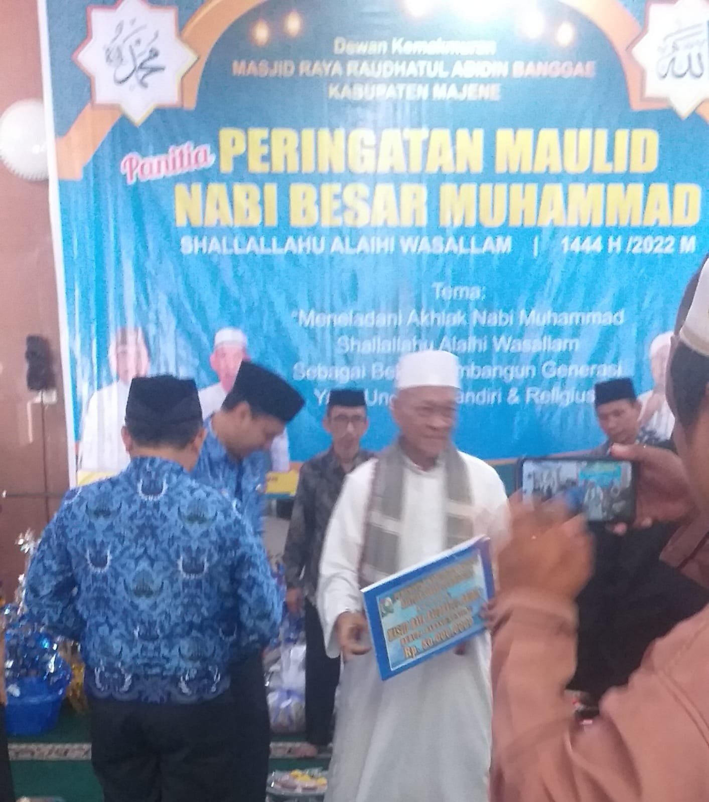 Pada kesempatan maulid. Bupati Majene, menyumbang sebanyak Rp. 50 juta untuk Pembangunan Masjid, ” Limpahkan reskimu YAA ALLAH pada Bapak Bupati.” Demikian suara sayup sayup terdengar dari emak- emak. Yang mengikuti Maulid Nabi Muhammad dengan takjub. (A/H.KR.YAHYA)
