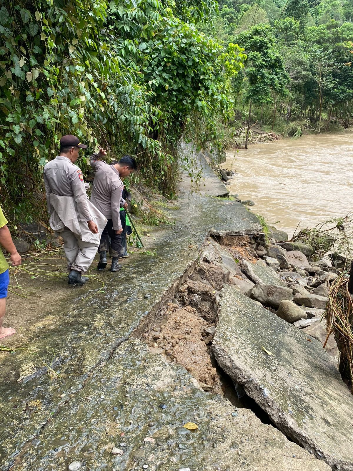 Dalam proses evakuasi kami bertemu beberapa warga masyarakat yang basah kuyup sambil membawa sanak kelurganya dan dalam kondisi kelaparan, sehingga kami memberikan bantuan berupa nasi bungkus dan minuman yang telah disiapkan sebelumnya oleh personil Polsek Malunda. Ujar Irene