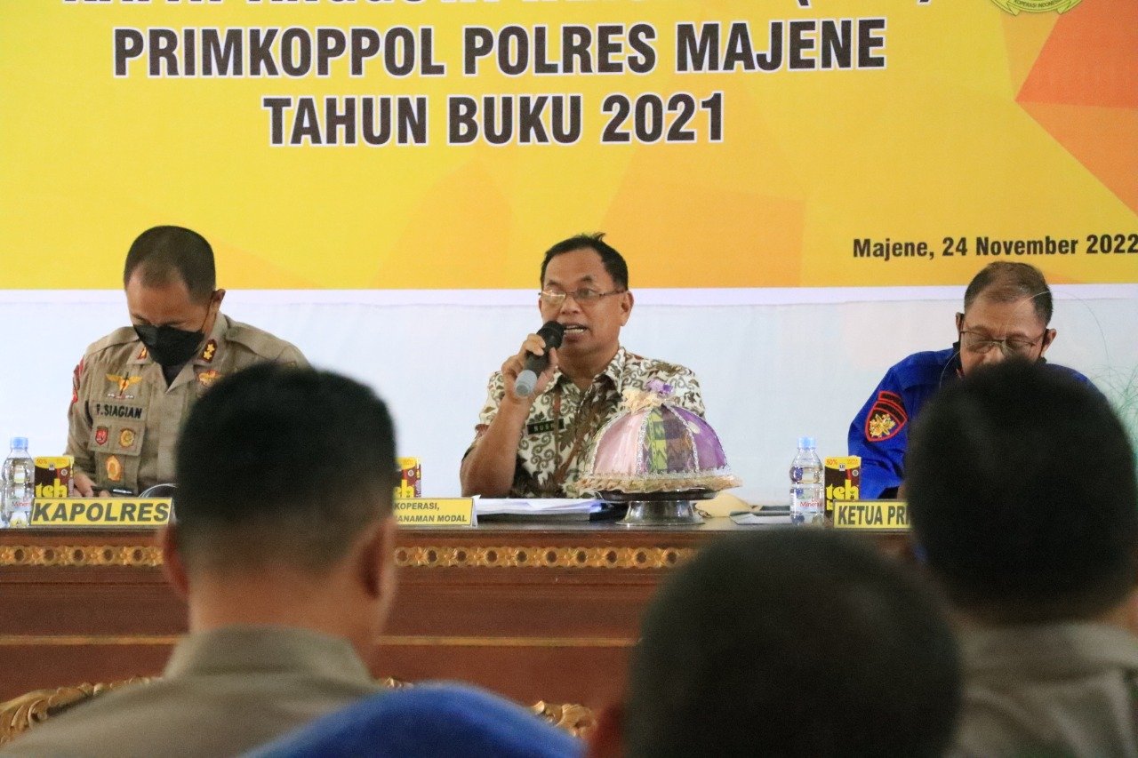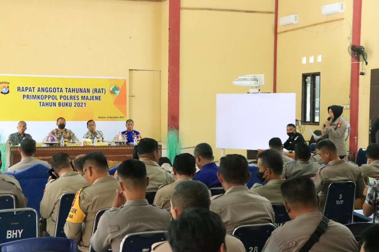 Polres Majene – Primkoppol Polres Majene menyelenggarakan Rapat Anggota Tahunan (RAT) tahun buku 2021, di aula wira pratama Polres Majene, Kamis (24/11/22) pagi.