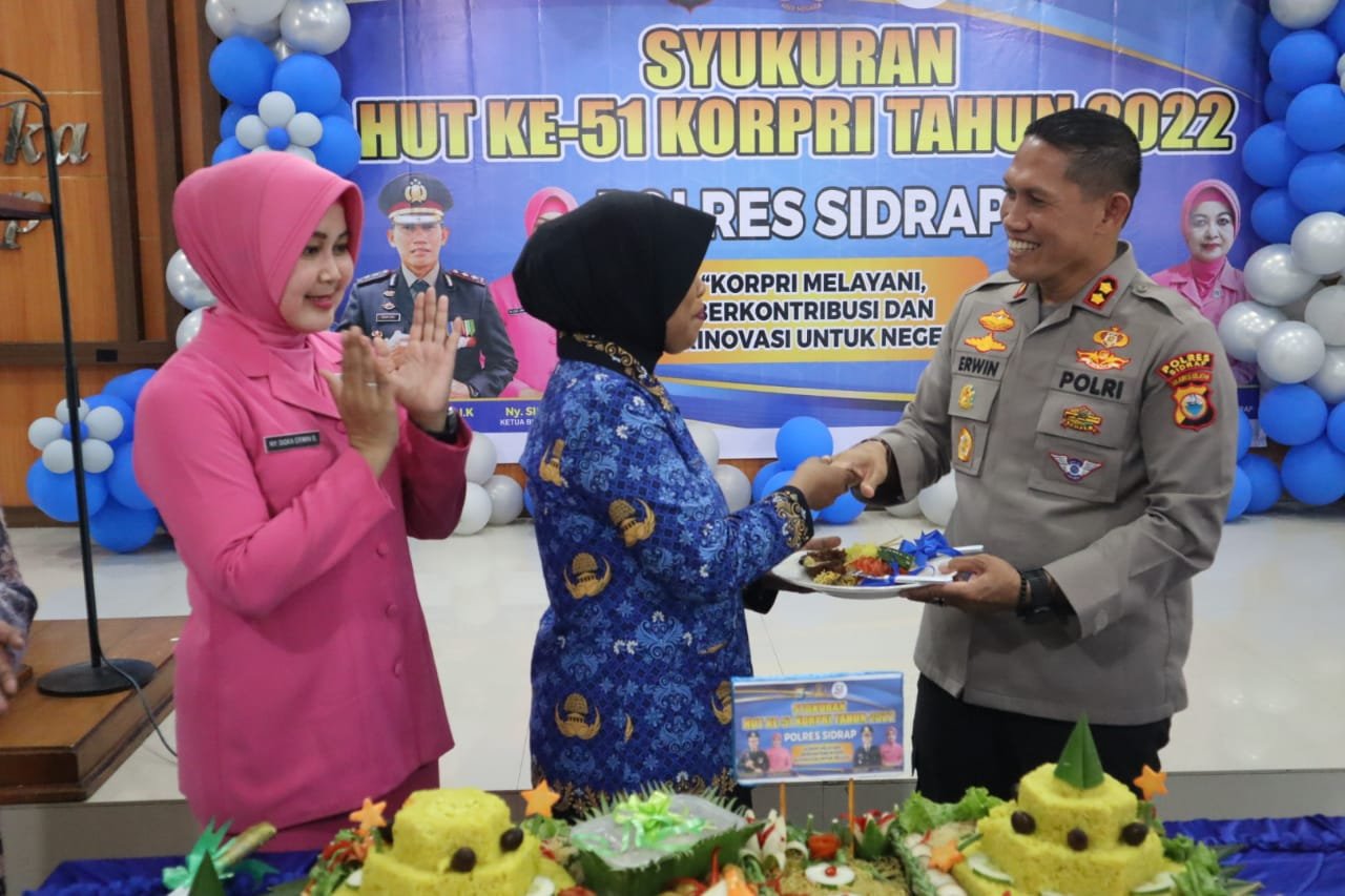 Kapolres Sidrap AKBP Erwin Syah. S.I.K Mengucapkan Selamat ulang tahun KORPRI ke – 51 semoga kedepannya semakin profesional, mandiri, dan sejahtera dalam mengemban tugas yang diberikan, sesuai dengan tema ulang tahun KORPRI tahun ini, “KORPRI melayani, Berkontribusi dan Berinovasi Untuk Negeri.
