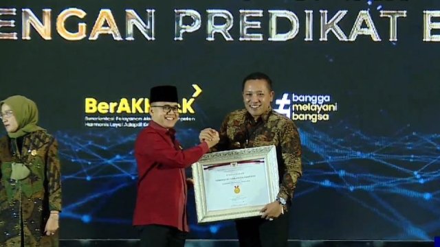 Penghargaan ini diterima oleh Bupati Sampang H. Slamet Junaidi dari Menteri Pendayagunaan Aparatur Negara dan Reformasi Birokrasi (PAN-RB) Abdullah Azwar Anas di Hotel Bidakara, Jakarta Selatan, Selasa (6/11/2022).