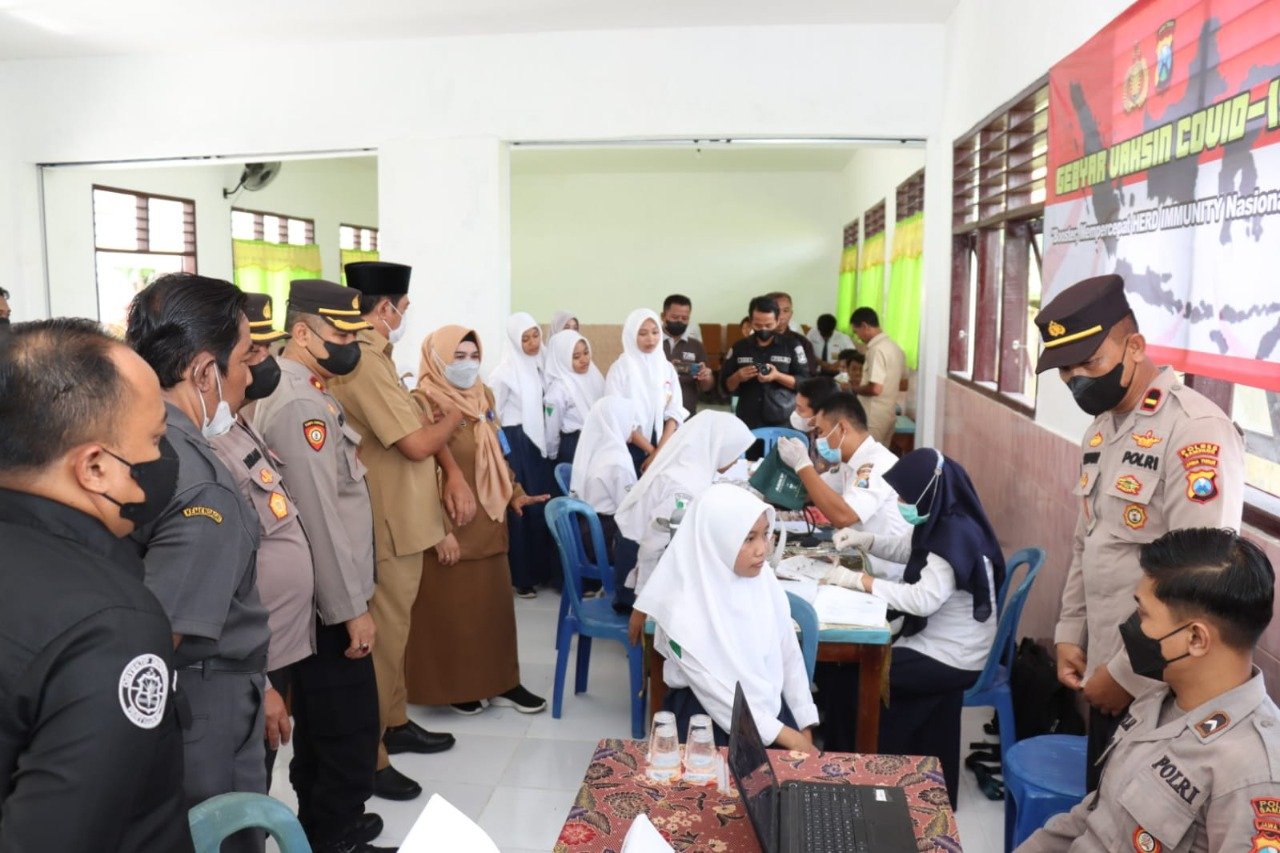 Selasa (06/12/2022) Wakapolres Sampang Kompol Jalaluddin SH dan Kabag Ops Polres Sampang Kompol Bambang Sugiyarto SH, MH melaksanakan monitoring pelaksanaan Gebyar Vaksin Covid-19 di SMP Negeri 2 Pangarengan yang dilaksanakan Polres Sampang dengan bekerjasama dengan Forkopimcam Pangarengan.