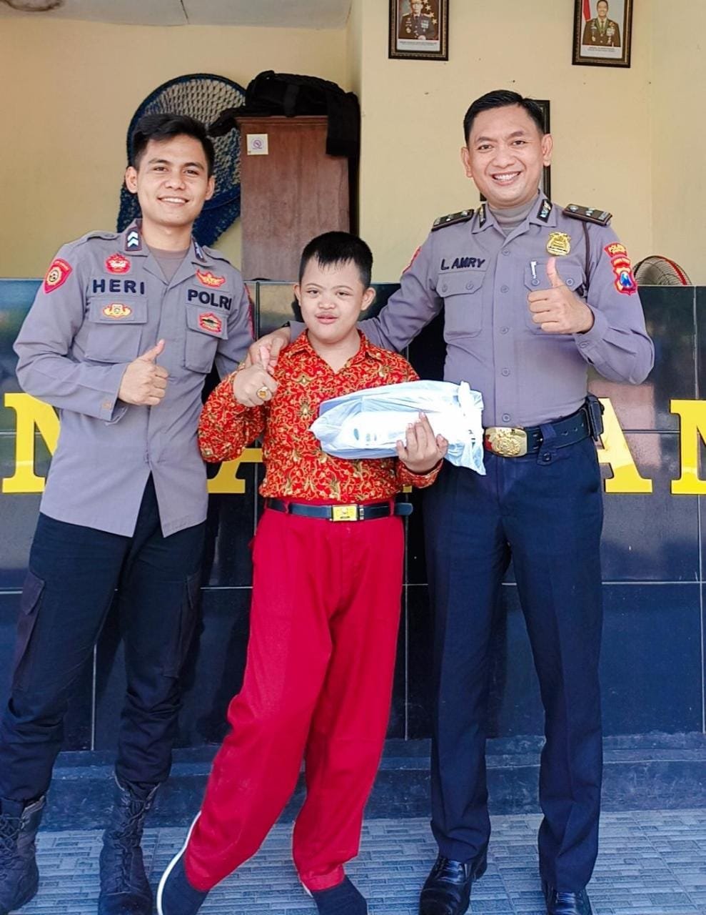 “Moh. Adam Farhansyah merupakan anak berkebutuhan khusus dan juga tidak mempunyai ibu karena sudah meninggal dunia. Saya sering mendatangi Farhan baik sekolah maupun di sekolah untuk memberi motivasi untuk semangat belajar sekaligus berbagi dengan mereka” ujar Aipda Amri.