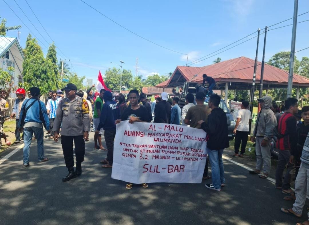Aksi tersebut digelar oleh masyarakat Malunda dan Ulumanda untuk mempertanyakan terkait bantuan dana siap pakai untuk stimulan rumah rusak tahap II bagi korban gempa 6,2 diwilayah kecamatan Malunda dan Ulumanda yang belum juga tersalurkan.