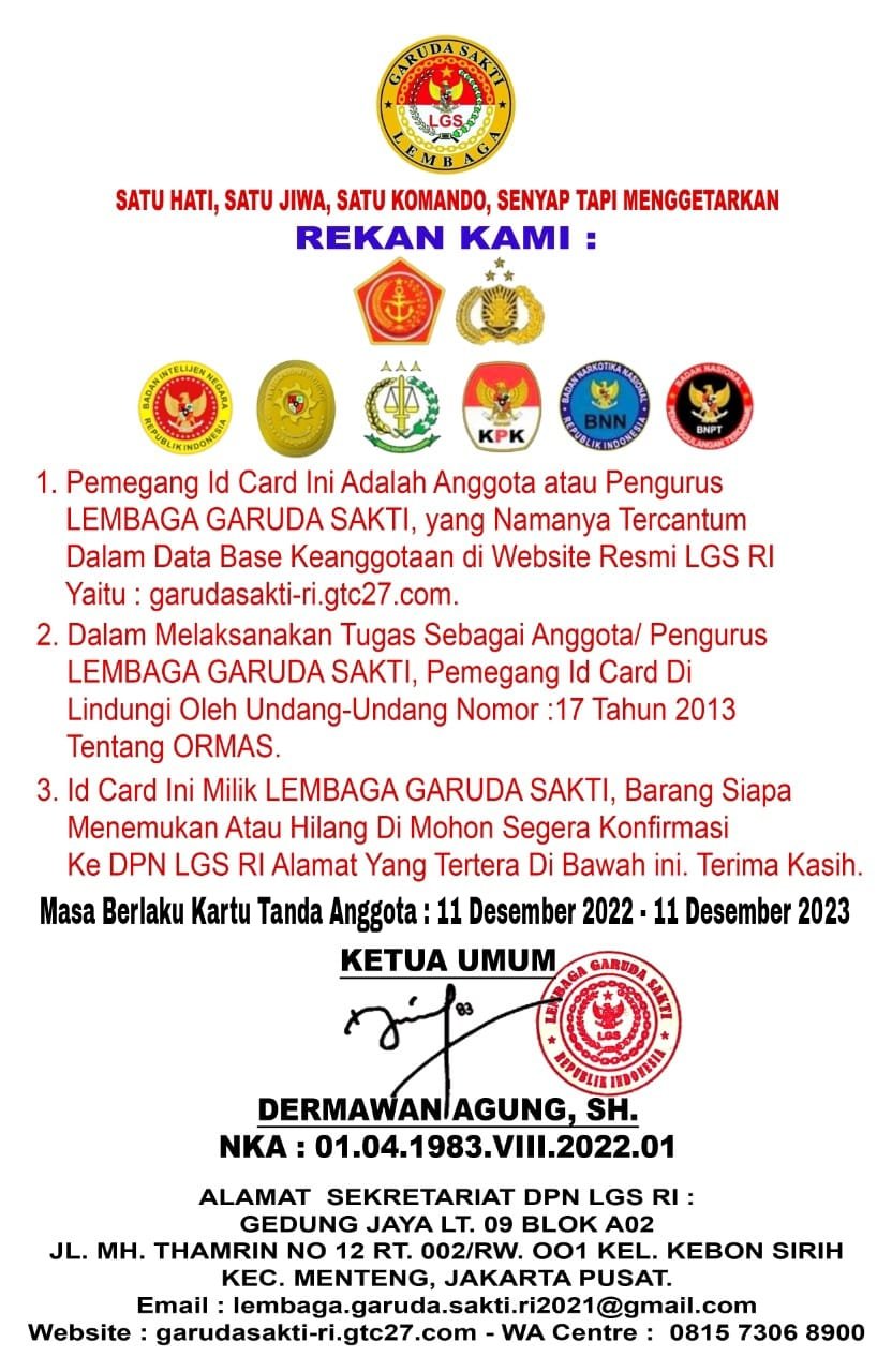 Disitulah berpijak untuk menggenggam erat Lembaga Garuda Sakti (LGS), yang bernapaskan PANCASILA & UU45. Sebagai simbol pergerakan menapak maju, demi NKRI Tercinta.
