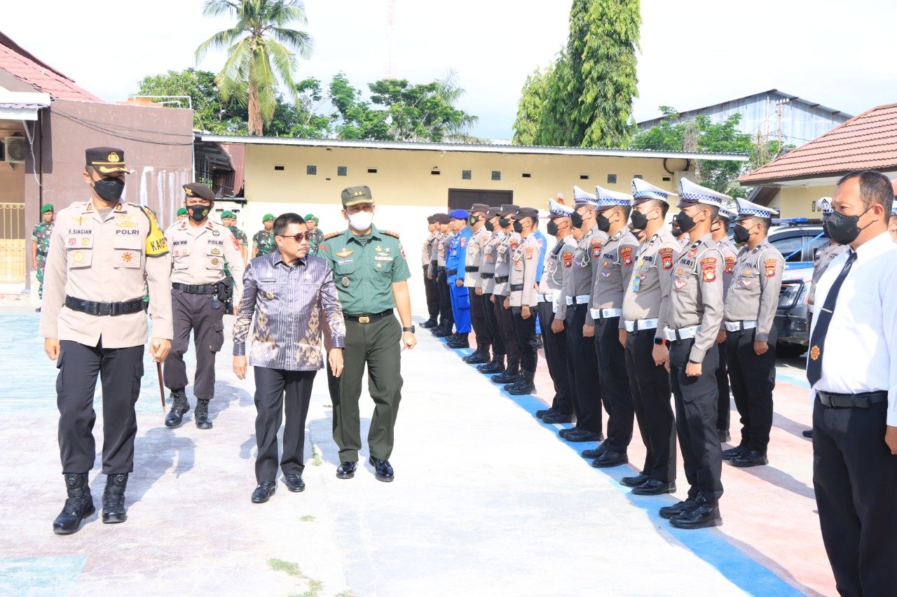 Kapolres Majene AKBP Febryanto Siagian, S.H., S.I.K., M.Si. selaku inspektur apel membacakan amanat Kepala Kepolisian Republik Indonesia mengatakan, “Apel Gelar Pasukan merupakan bentuk pengecekan akhir kesiapan personel maupun sarana prasarana. Dengan demikian, diharapkan pengamanan dapat terselenggara secara optimal dan sinergi, sehingga perayaan Natal 2022 serta Tahun Baru 2023 (Nataru) mampu berjalan dengan kondusif.”