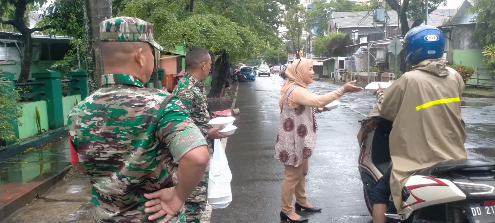 Kegiatan Jumat Berkah Akhir tahun tersebut berlangsung di depan Koramil 1408-07/Ujung Pandang. Nampak personel Koramil membagikan Jumat Berkah berupa nasi kotak kepada warga yg melintas di Jalan Amanagappa.