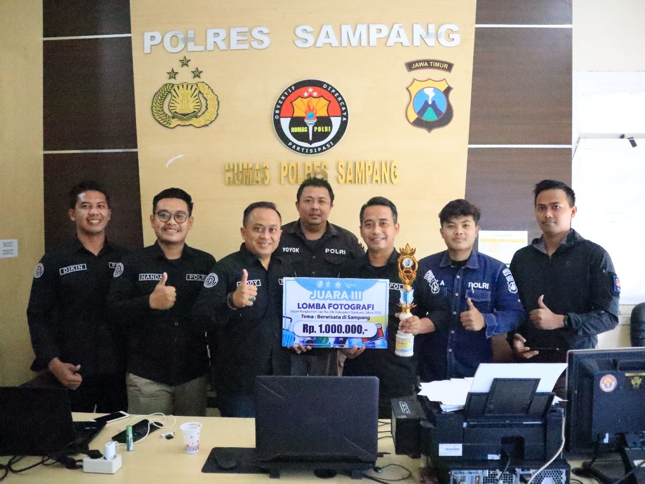 Sampang – Kapolres Sampang AKBP Arman S.IK, M.Si yang di wakili Kasi Humas Polres Sampang Ipda Dody Darmawan SH menyampaikan kepada awak media bahwa Humas Polres Sampang mendapat juara ke-3 lomba fotografi dalam rangka hari jadi Kabupaten Sampang yang ke-399 tahun 2022.