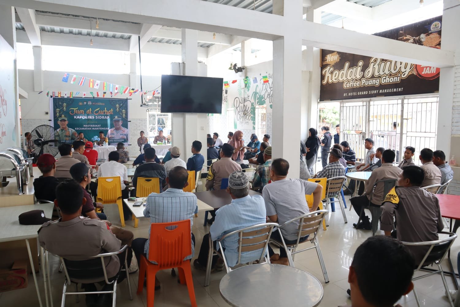 KOSONGSATUNEWS.COM, SIDRAP – Kapolres Sidrap AKBP Erwin Syah,SIK didampingi oleh Waka Polres Kompol M. Akib dan PJU menggelar Jumat Curhat bersama Warga di Aula Kedai Ruby. Jumat (30/12/2022).