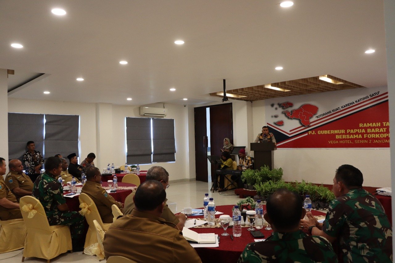 Kota Sorong – Ramah Tamah dengan Pj. Gurbernur Papua Barat Daya bersama FORKOPIMDA ( Forum Komunikasi Pimpinan Daerah) digelar pada hari Senin, (2/1) 2023 di Hotel Vega Kota Sorong, Provinsi Papua Barat Daya.