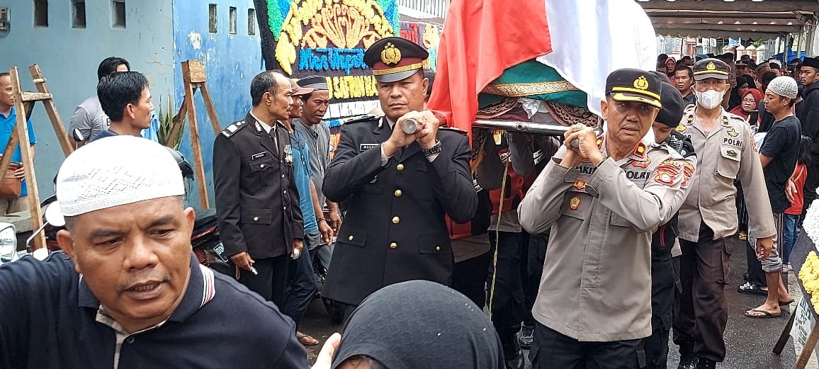 KOSONGSATUNEWS.COM, MAKASSAR — Penuh haru, Kapolres Sidrap AKBP Erwin Syah. S.I.K yang di wakili oleh Wakapolres Sidrap KOMPOL M. Akib bersama Kasat Lantas AKP Mahrus Ibrahim. S.Sos Ikut terjun membawa keranda jenazah salah satu anggotanya yang meninggal dunia IPTU Madusarfin Haslim yang meninggal karena sakit. Minggu, (22/01/2023).