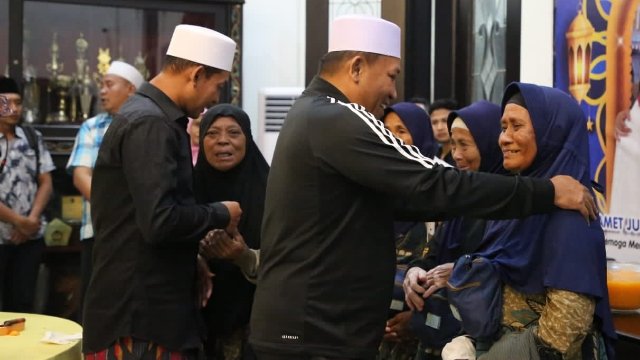 Suasana haru keluarga mengiringi pelepasan keberangkatan umrah para kaum dhuafa di Pendapa Trunojoyo.