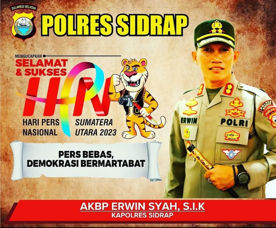 Ditempat terpisah, Kapolres Sidrap, AKBP Erwin Syah, mengucapkan selamat Hari Pers Nasional dengan tema Pers Merdeka, Demokrasi Bermartabat.
