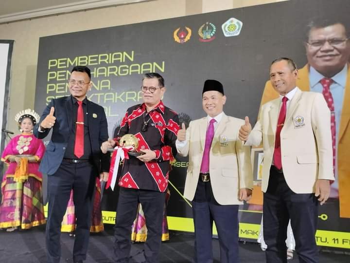 Rektor UNM menerima penghargaan tersebut disela-sela pelantikan Pengurus Provinsi (Pengprov) PSTI Sulawesi Selatan periode 2022-2026, di Hotel Aryaduta Makassar, Sabtu malam (11/2/2023)