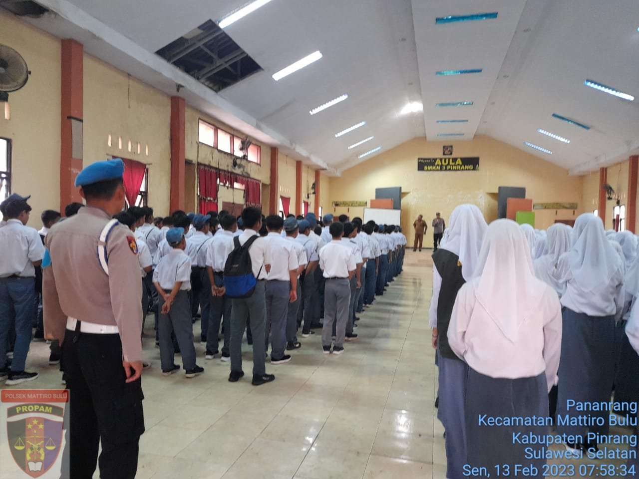 KOSONGSATUNEWS.COM, PINRANG—IPTU H.Sudirman, Kapolsek Mattirobulu, Polres Pinrang, Sulsel. Kembali melaksanakan kegiatan Police Go To School di UPT SMK Negeri 3 Pinrang. Senin, 13 Februari 2023