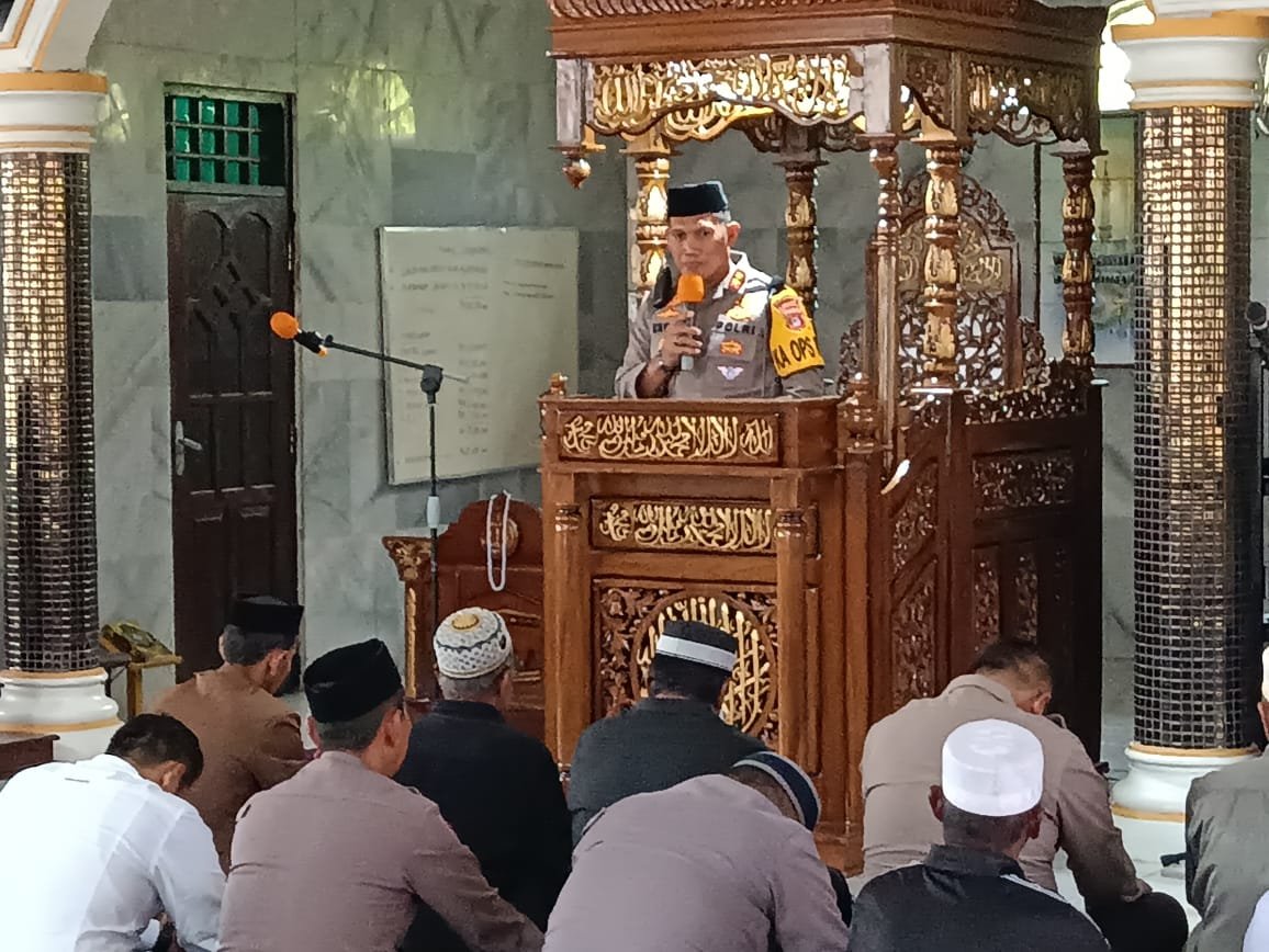 Safari Jumat, Kapolres Sidrap Memberikan Himbauan Kamtibmas ke Jamaah Masjid Al-Mujahidin Bila Riase