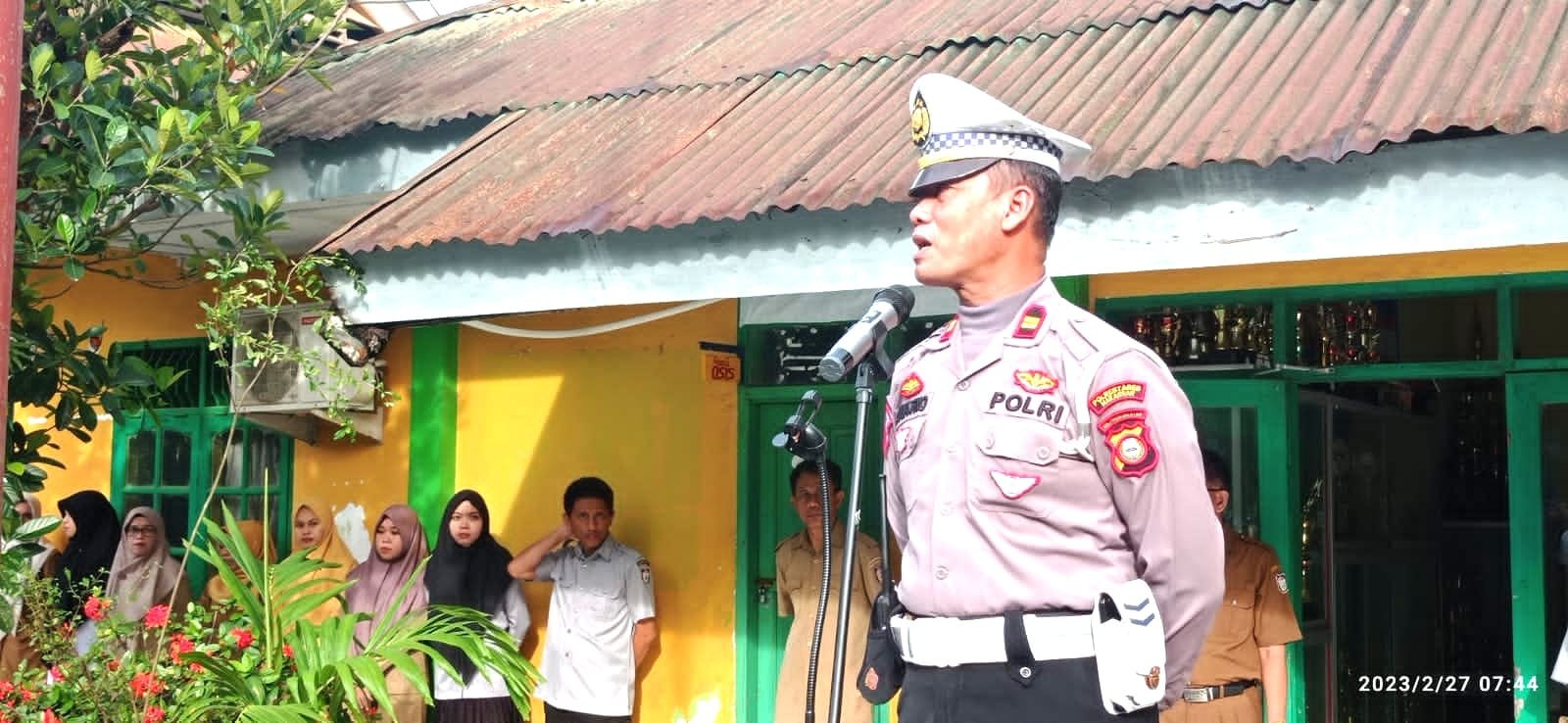 Kepala Unit Lantas Kepolisian Sektor Kecamatan Tamalate, Iptu Suyatno yang menjadi pembina upacara hari Senin dalam amanatnya memberikan pengarahan terkait aturan dan keselamatan berlalu lintas. Iptu Suyatno yang didampingi Ipda Syafaat mengajak siswa SMPN 27 Makassar untuk memahami dan menaati tertib lalu lintas.