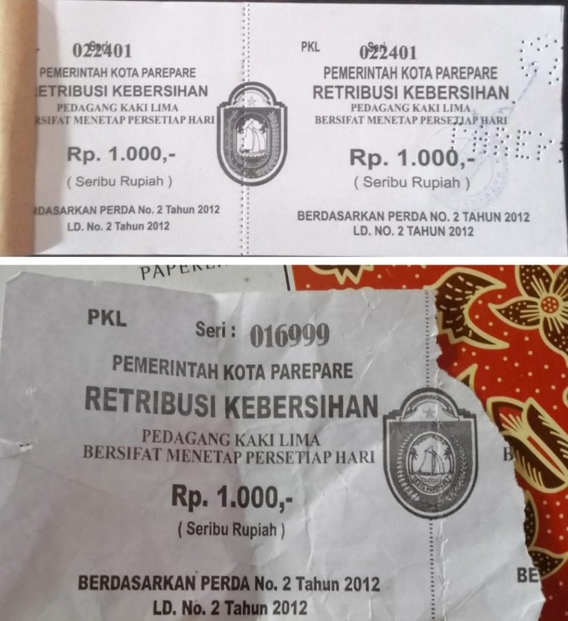 Pedagang pasar sentral Lakessi Kota Parepare dibebani karcis retribusi kebersihan yang diduga palsu.