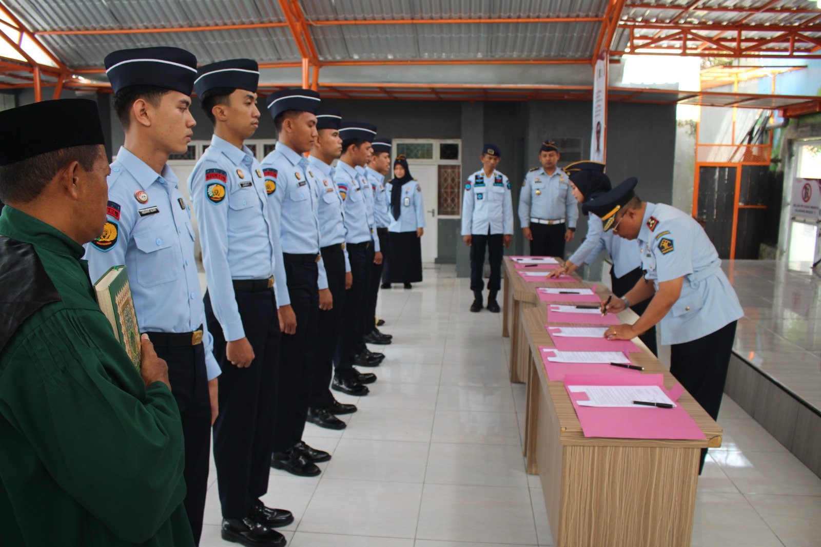 Kepala Lapas IIA Parepare Totok Budiyanto, AmdIP, SH memimpin acara Pelantikan dan Pengambilan Sumpah Pegawai Negeri Sipil (PNS).
