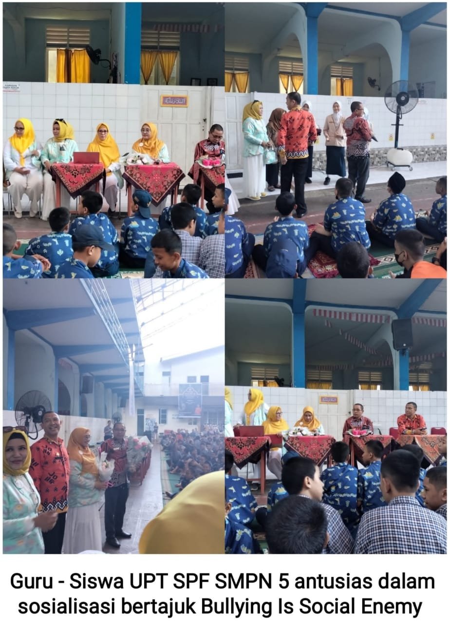 SMP Negeri 5 Makassar bersama Bidang Humham dan Bidang PPPA Kici kota Makassar melaksanakan sosialisasi mengenai bullying atau perundungan.