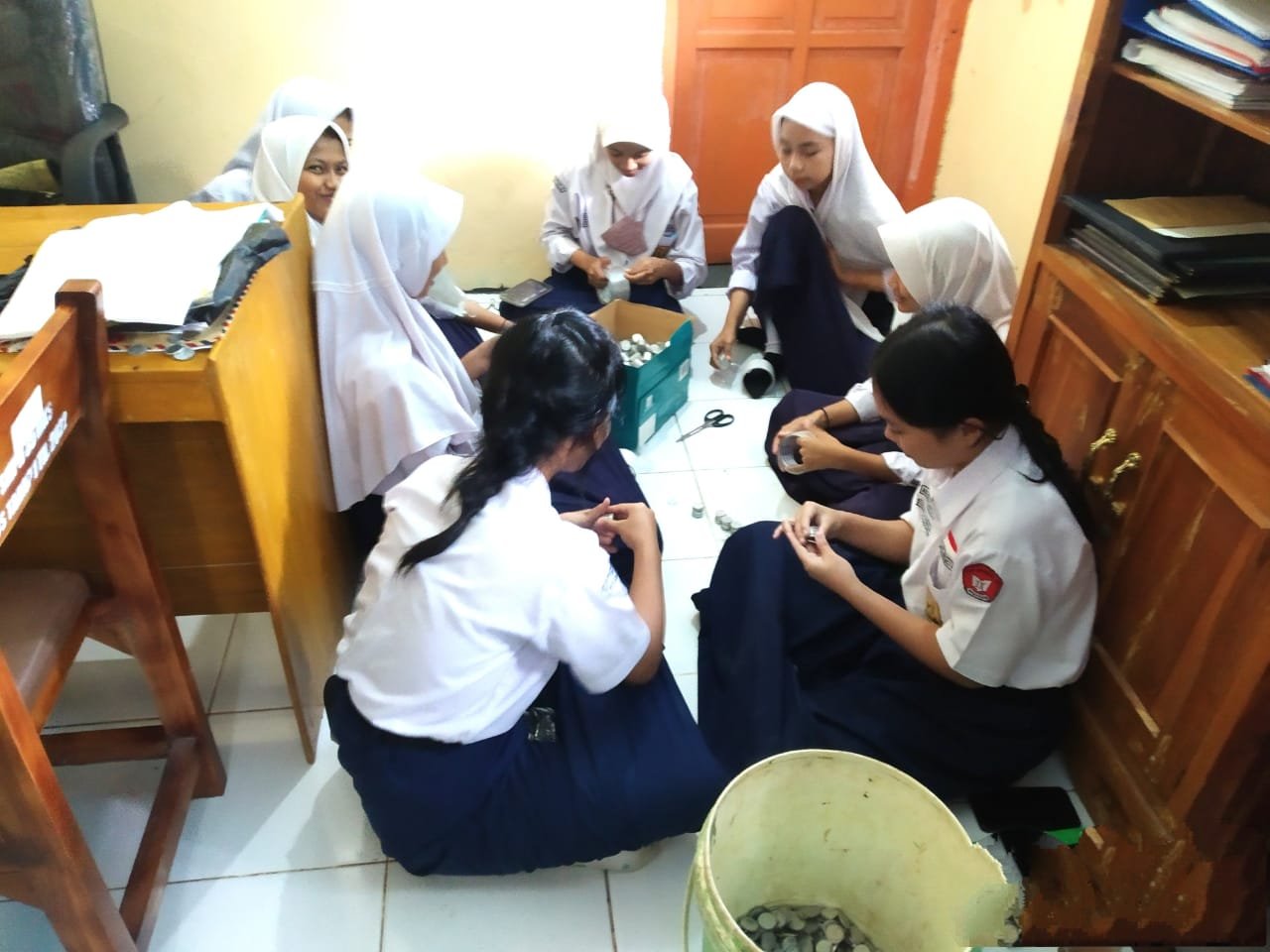 Peserta didik (siswa siswi) SMP Negeri 35 Makassar berlomba-lomba dan sangat antusias mengadakan pengumpulan uang koin atau uang logam.