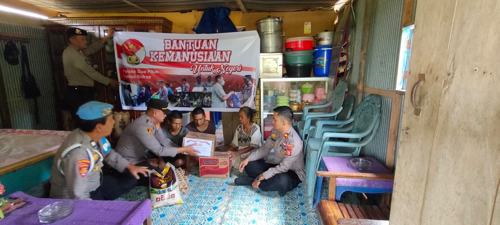 Kapolsek Dua Pitue, Polres Sidrap Iptu Bahri yabg didampingi Wakapolsek Iptu Irwan Taufiq bersama Personil Polsek Dua Pitue melakukan penyerahan bantuan sosial (Bansos) berupa Paket Sembako. Jumat, (31/3/2023)