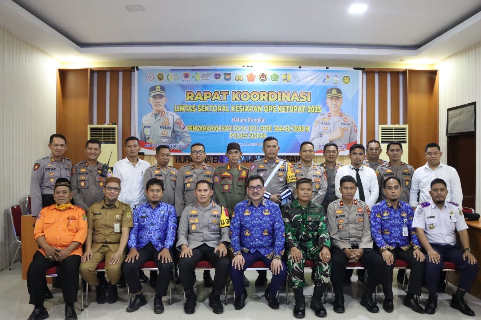 kosongsatunews.com, SIDRAP – Jelang Idul Fitri 1444 H dan pengamanan arus mudik dan arus balik lebaran mulai besok, Polres Sidrap menggelar rapat koordinasi lintas sektoral Operasi Ketupat 2023 bersama sejumlah instansi terkait, Senin (17/4/2023).