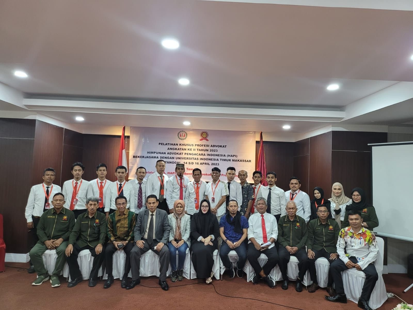 Makassar-Sul-Sel Organisasi Advocad DPD Himpunan Advocad Pengacara Indonesia(HAPI)Sul-Sel kerja sama dengan Kampus Universitas Indonesia Timur(UIT)laksanakan Pelatihan Khusus Profesi Advocad(PKPA) Angkatan ke 2 Tahun 2023 yang di hadiri beberapa peserta dari berbagai daerah,minggu (16/04/2023).