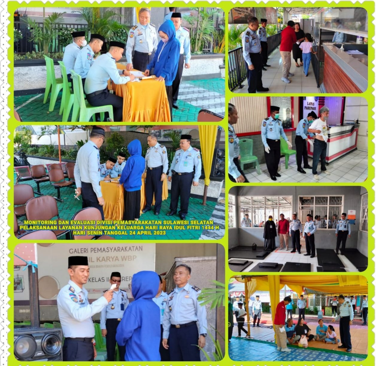 Pasca lebaran hari ketiga suasana Idul fitri 1444H, Divisi Pemasyarakatan Kanwil Kemenkumham Sulawesi Selatan melakukan Monitoring dan Evaluasi (Monev) terkait pelayanan kunjungan bagi keluarga warga binaan pemasyarakatan di Lapas II A Parepare, Sulsel. Senin, 24 April 2023